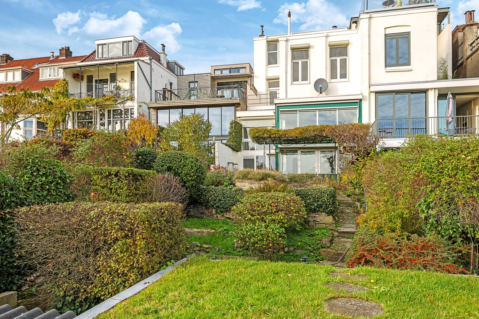 • Perceel van 495 m², diepe tuin op het zuiden gelegen met vrij uitzicht op de Rijn