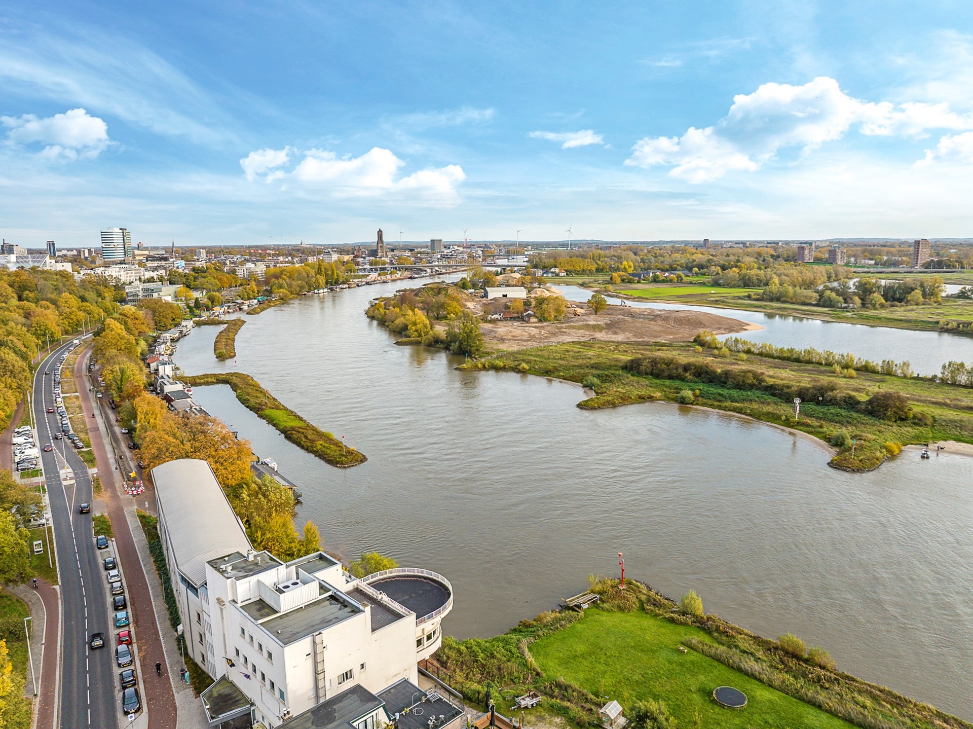 Hier bevinden zich drie slaapkamers, een extra keuken en een tweede dakterras. Het uitzicht over de uiterwaarden is indrukwekkend; een plek waar rust en openheid samenkomen midden in de stad.