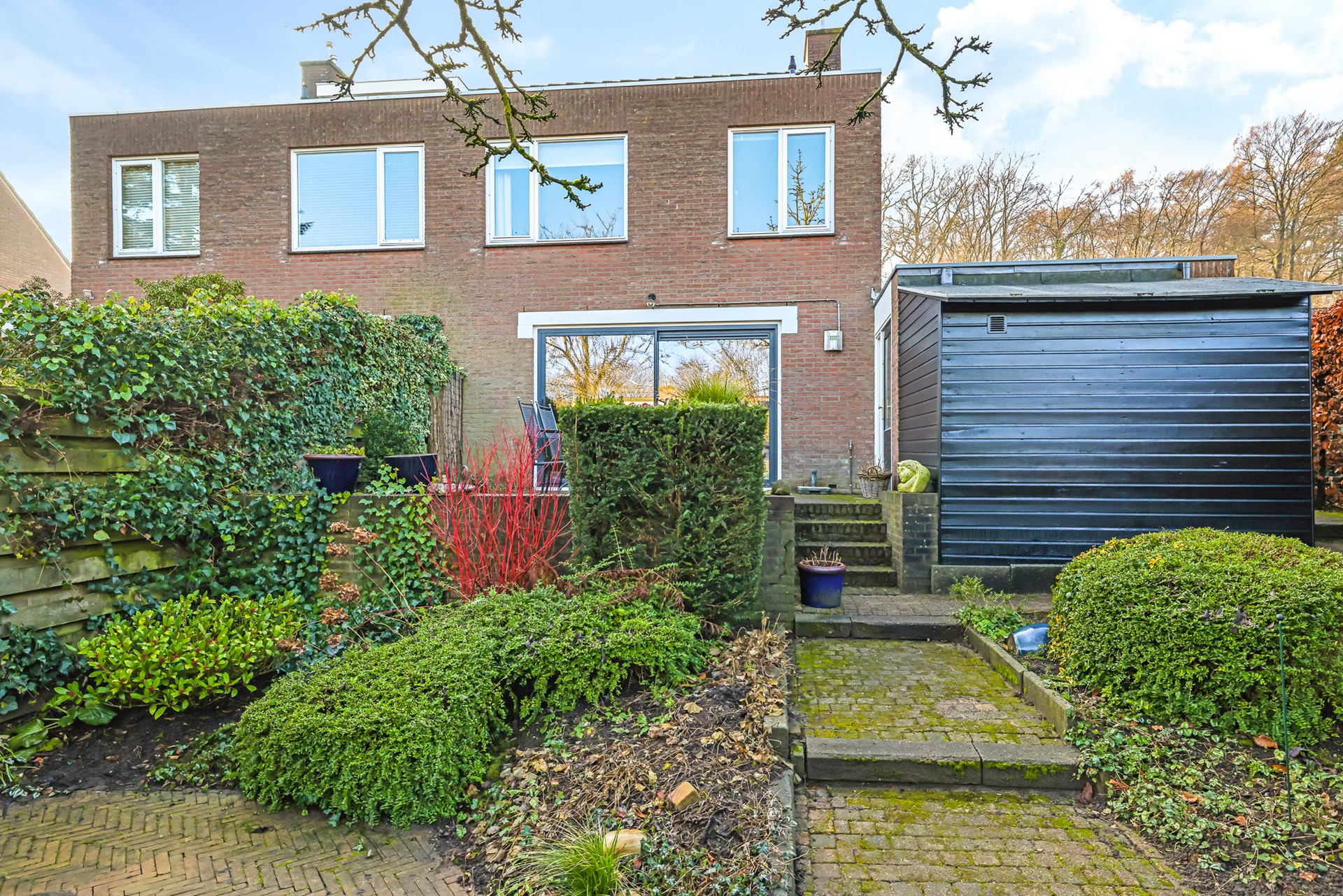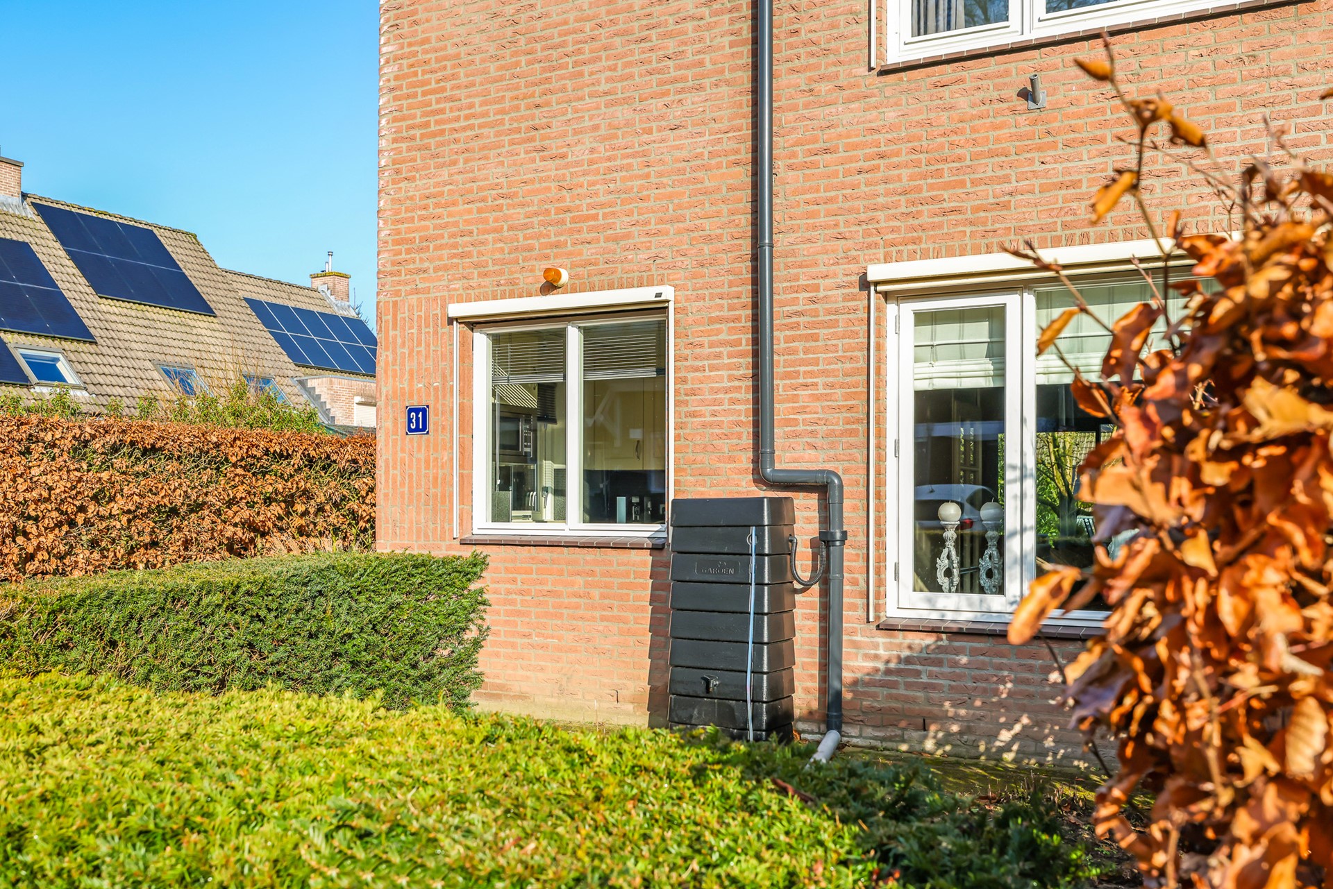 Aangrenzend aan de woning is er ook een schuur, handig voor fietsen en tuingereedschap. De achtertuin en schuur zijn bovendien bereikbaar via een poort aan de zijkant van de woning.