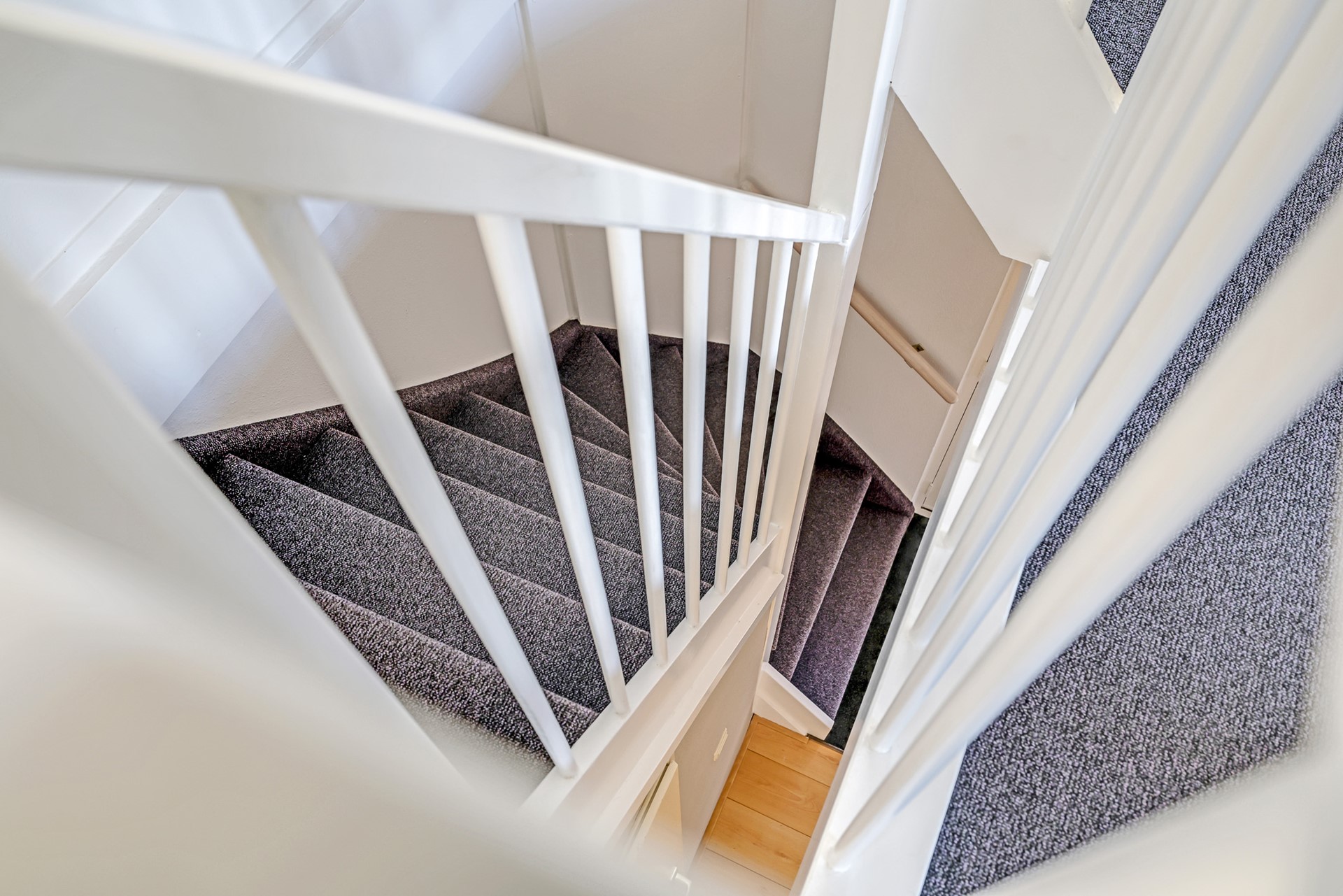 The landing provides access to three well-proportioned bedrooms, all neatly finished and fitted with carpeting. The master bedroom is particularly practical thanks to its built-in wardrobes.