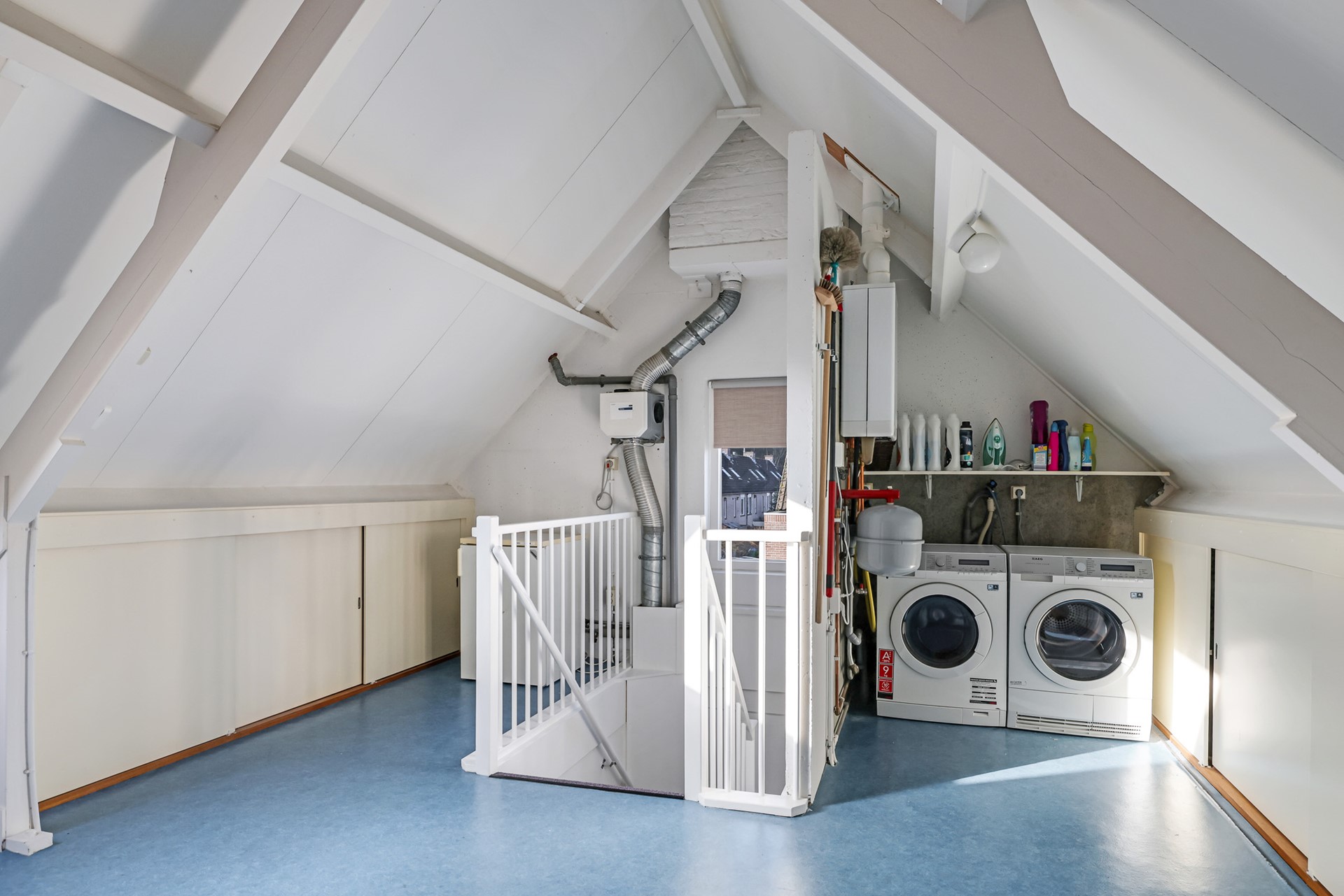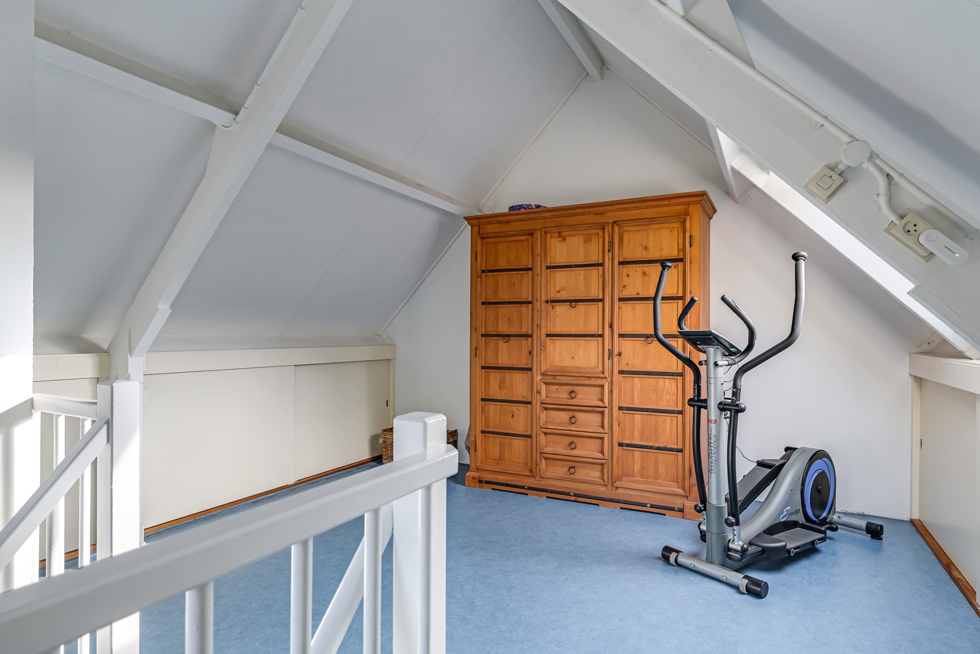 The second floor is a well-maintained, multifunctional space with connections for a washing machine and dryer, as well as built-in storage. It can easily be arranged as an additional workspace, gym or hobby room — entirely depending on your needs.