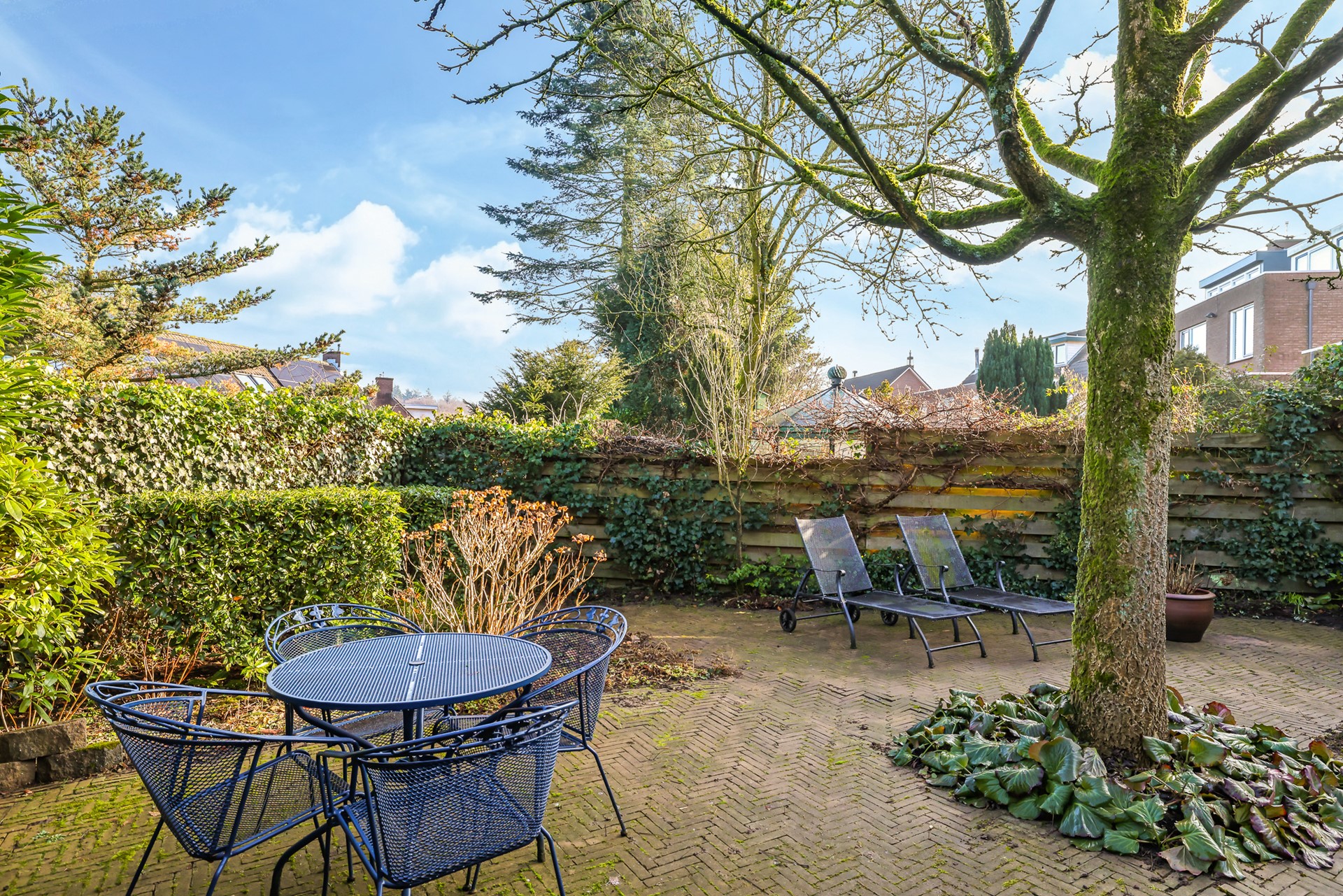 De tuin is écht een pluspunt. De achtertuin is groot, groen en sfeervol, aangelegd op meerdere niveaus met verschillende terrassen. Of je nu in de zon wilt ontbijten, ’s middags in het groen wilt loungen of ’s avonds gezellig wilt tafelen: je vindt altijd een fijne plek.